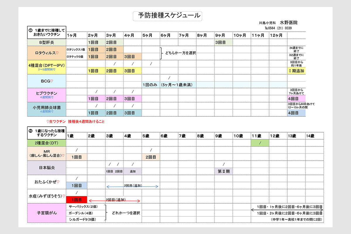 予防接種のスケジュール調整については、当院まで遠慮なくご相談ください。